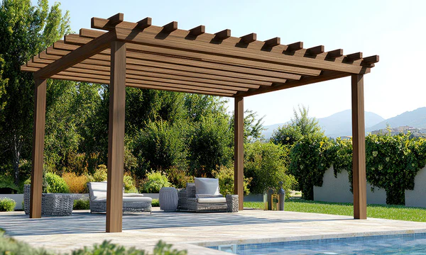 Una pérgola de madera aporta calidez y estilo a cualquier espacio exterior. Hecha con materiales naturales y duraderos, brinda sombra y confort, creando rincones acogedores que se adaptan a varios estilos decorativos. Perfecta para transformar terrazas, patios o jardines con un toque único.